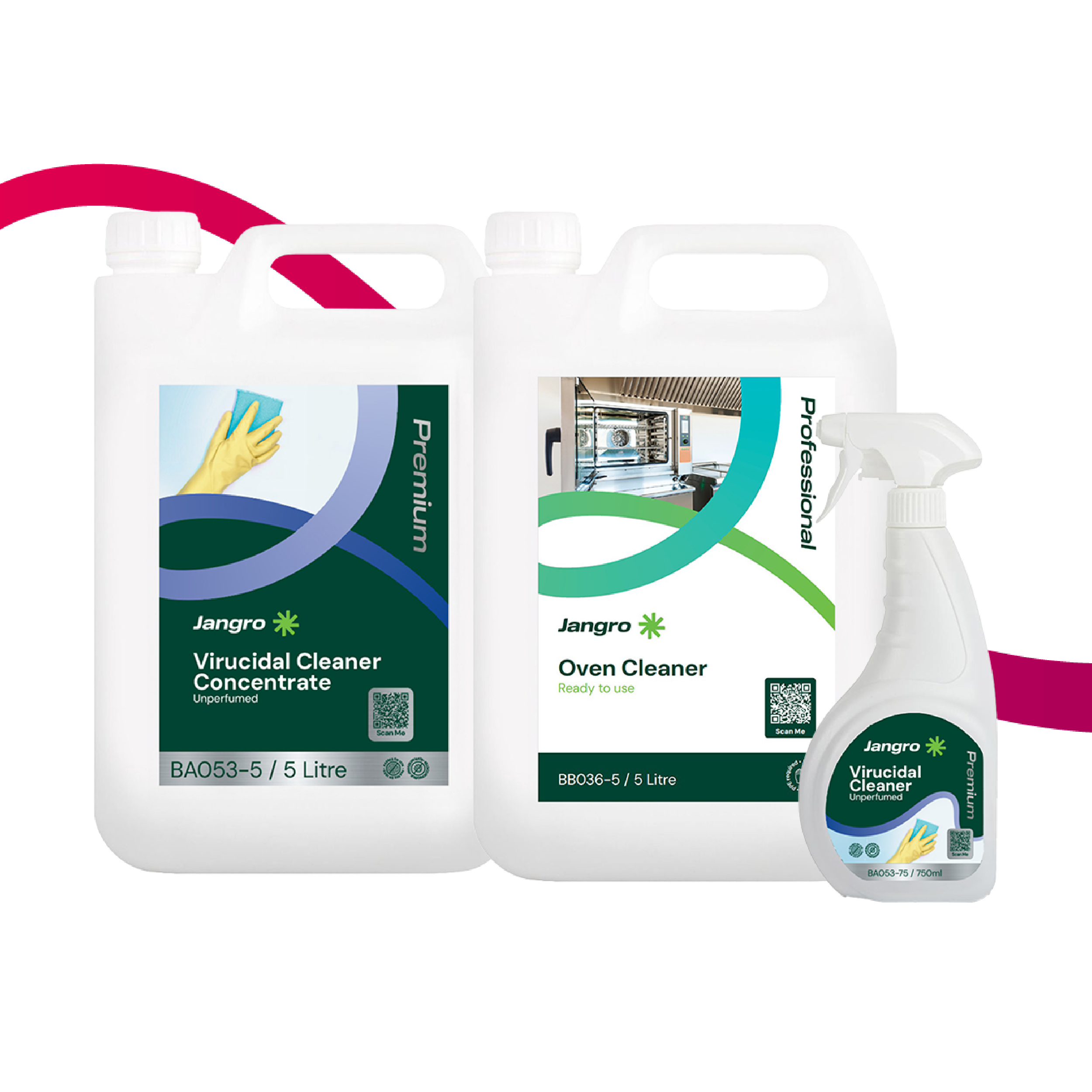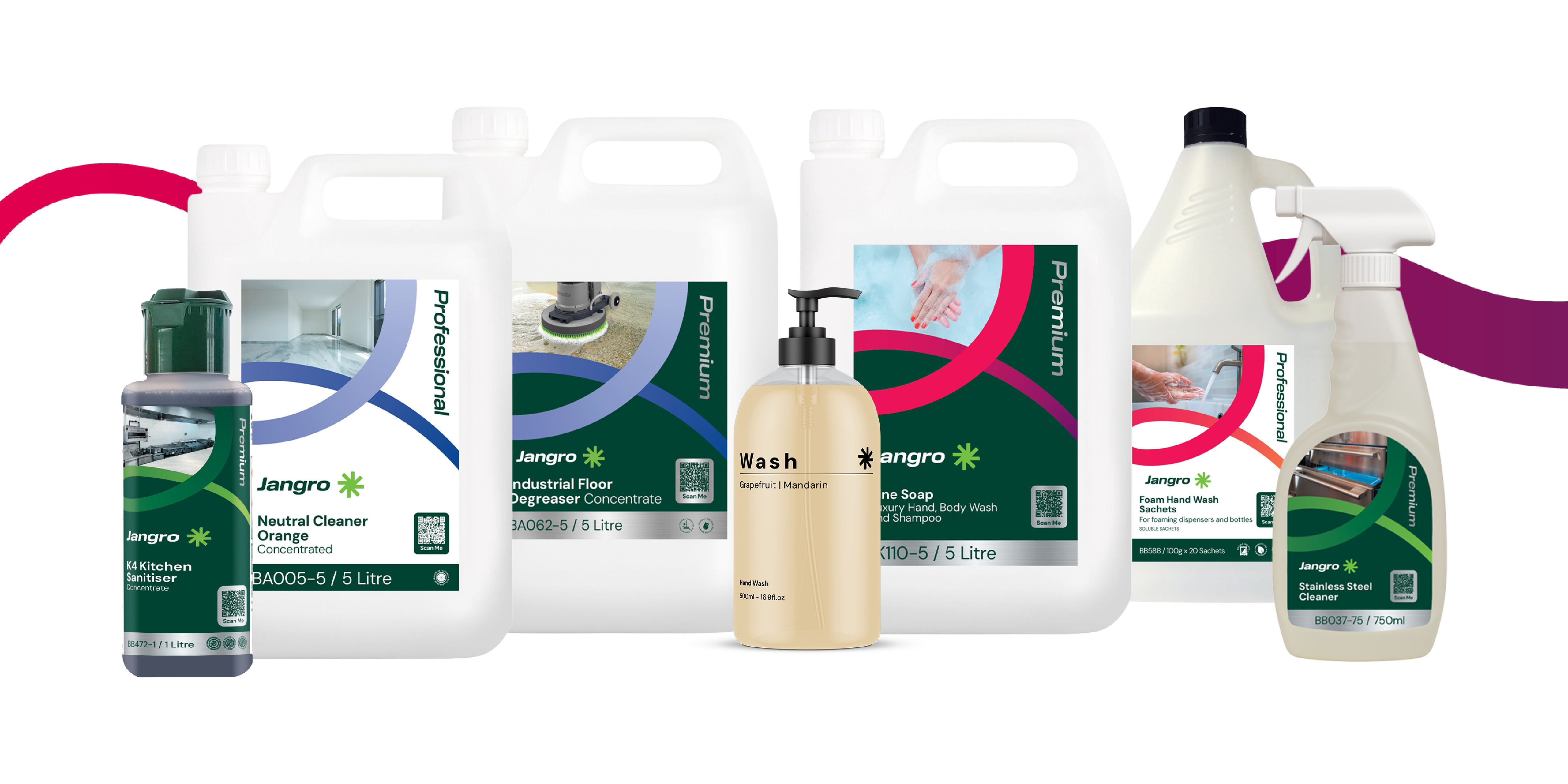 Jangro rebranded in 2025. And as part of the rebrand over 400 products needed to be launched with re-designed labels. From hand wash to carpet extraction powder the front and back labels needed designing.