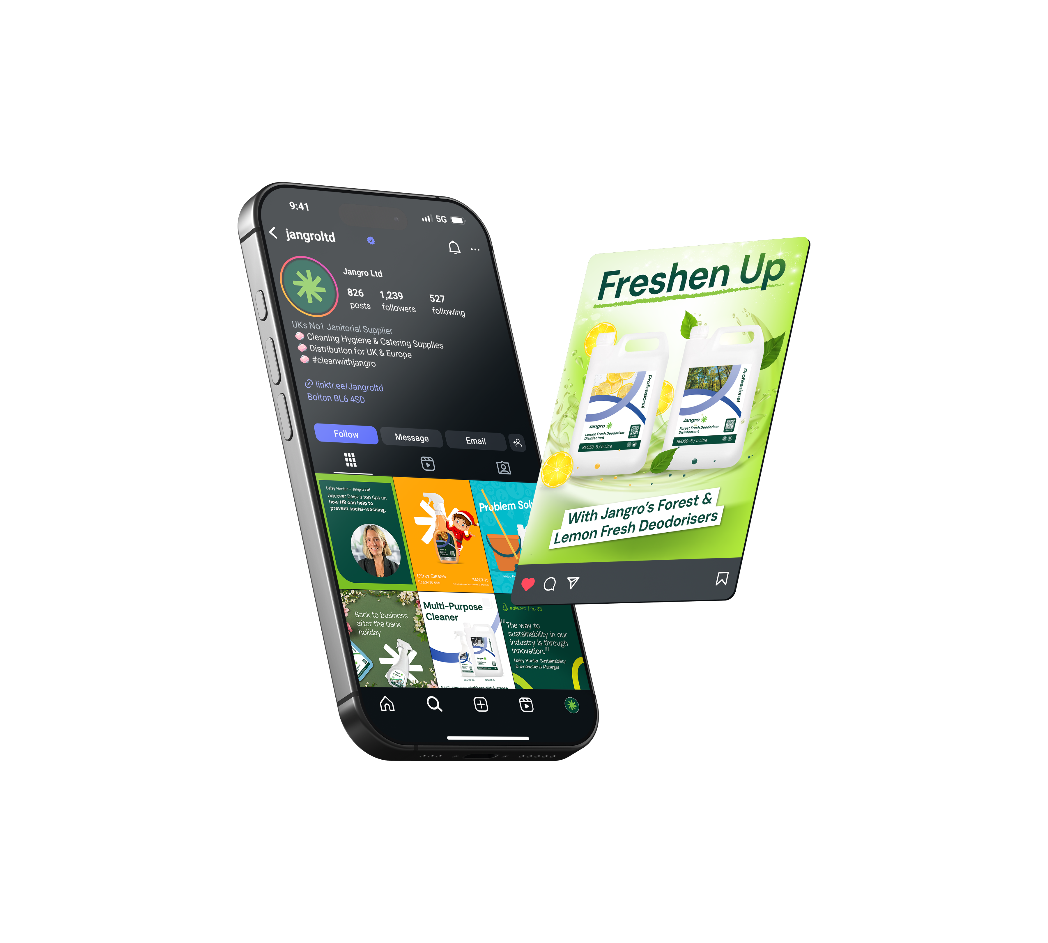 This work showcases a selection of social media graphics and post scheduling created for Jangro, the UK’s leading janitorial supply company.