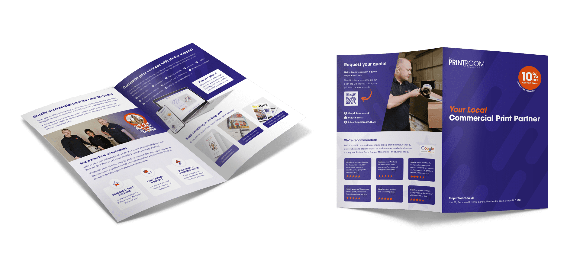 I was tasked with designing a folded leaflet for distribution to local businesses. Raising awareness of The Print Room with the goal of winning business.